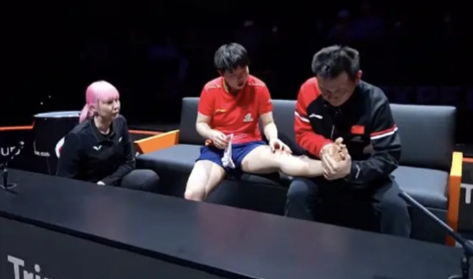 比赛进行到第四局时,大比分1-2过时的孙颖莎因脚踝不适苦求了医疗暂停,进程惩办后,在脚部缠上了绷带,坚捏进行比赛,并以11-7赢下本局,将比分追至2-2平。