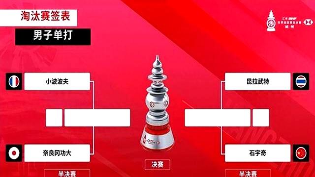 半决赛抽签把男单的脚本定了,石宇奇对昆拉武特,小波波夫对奈良冈功大。