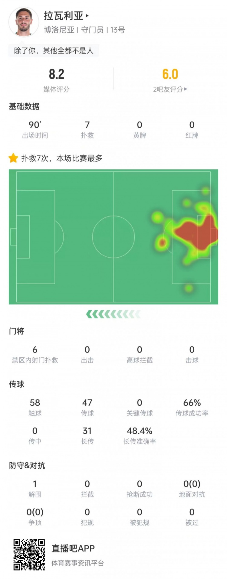 拉瓦利亚本场比赛数据: