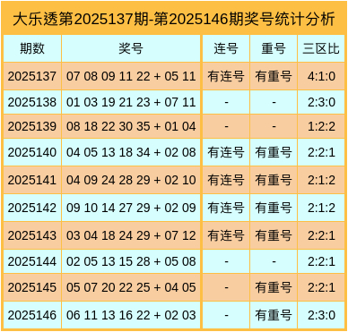 大乐透第2025146期总结:前区06、11、13、16、22 + 后区02、03。