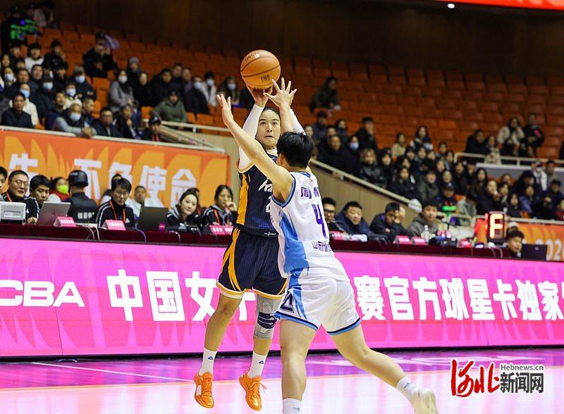 12月2日,石家庄英励女篮23号王丽丽(左)在比赛中。
